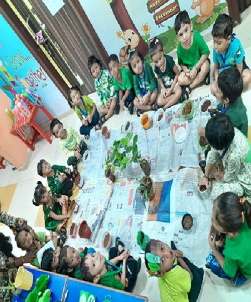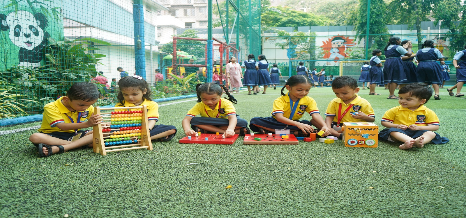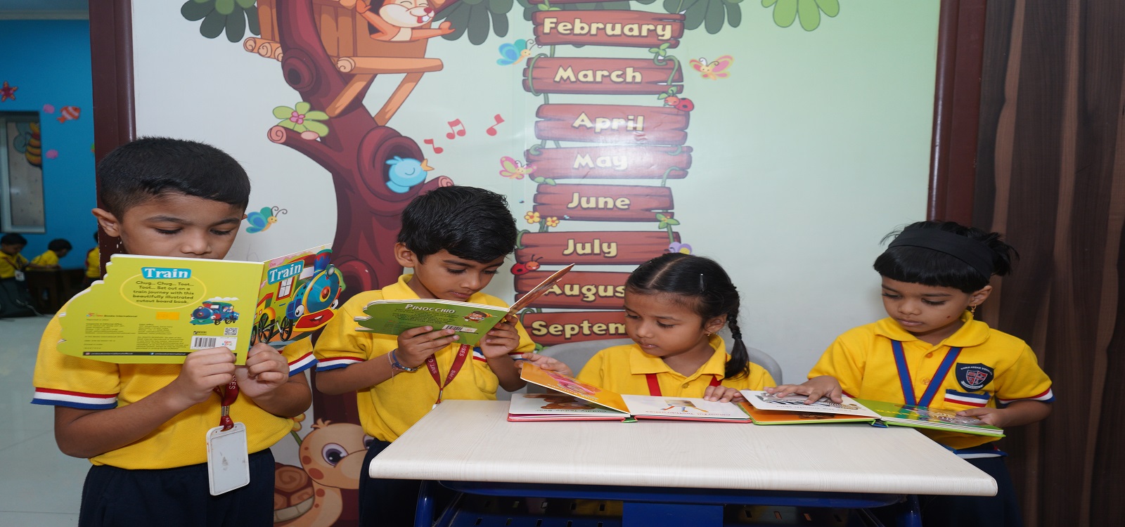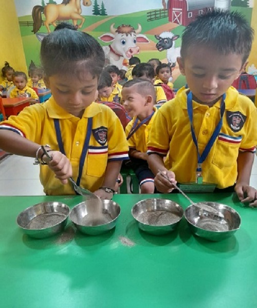 Children learn basic concepts of Math, 2 and 3 letter words,they can read simple sentences, their fine and gross motor skills are developed,language and cognitive development are enhanced.